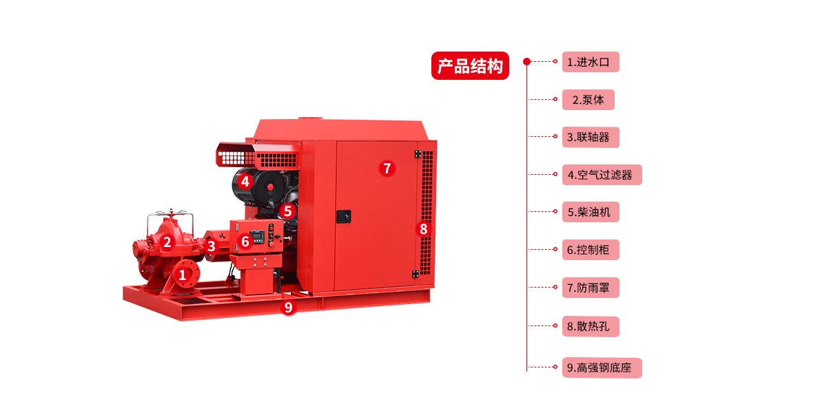 柴油機(jī)中開泵柴油機(jī)消防水泵是貝德科技集團(tuán)有限公司嚴(yán)格按照標(biāo)準(zhǔn)GB6245消防泵性能要求和試驗(yàn)方法等標(biāo)準(zhǔn)研制開發(fā)的一種新型消防設(shè)備,該系列設(shè)備按所配用的消防泵(單級(jí)單吸式、單級(jí)雙吸式、節(jié)段多級(jí)式)可分為XBC-IS、XBC-S、XBC-D等三個(gè)子系列,設(shè)備壓力、流量范圍廣,其應(yīng)用幾乎能滿足消防所需的各種場(chǎng)合。XBC-IS柴油機(jī)消防泵組常用于高層建筑、自來(lái)水公司、鋼鐵廠、酒廠、化工廠、酒店、醫(yī)院、等大型項(xiàng)目工程應(yīng)急供水。柴油應(yīng)急供水泵組適用于無(wú)人值守應(yīng)急給水系統(tǒng),產(chǎn)品具有自動(dòng)化程度高、性能優(yōu)越保護(hù)功能齊全、結(jié)構(gòu)合理、安裝簡(jiǎn)易、性價(jià)比高等特點(diǎn),當(dāng)工廠突然停電、柴油機(jī)應(yīng)急供水泵組自動(dòng)啟動(dòng)補(bǔ)充管網(wǎng)壓力。